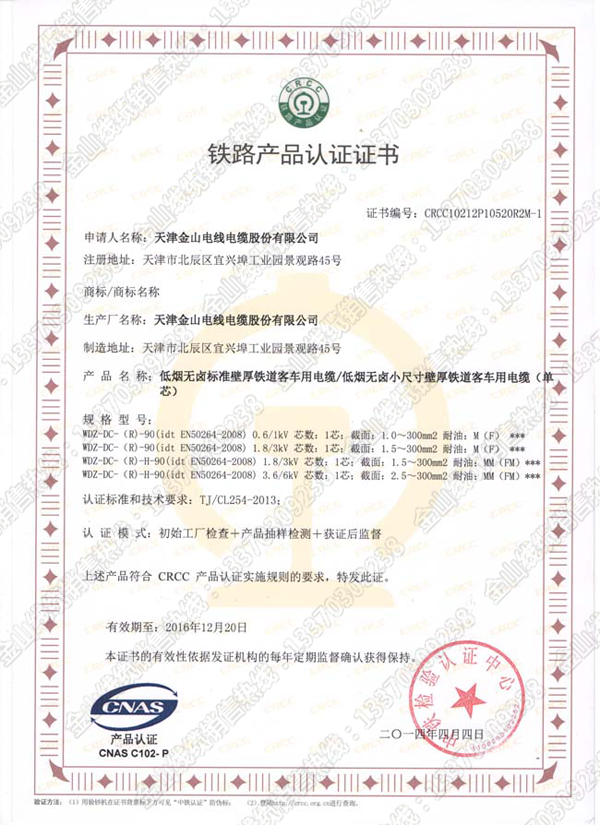 CRCC认证 WDZ-DC-90 WDZ-DC-R-90标准壁厚与小尺寸壁厚铁道客车电缆CRCC认证